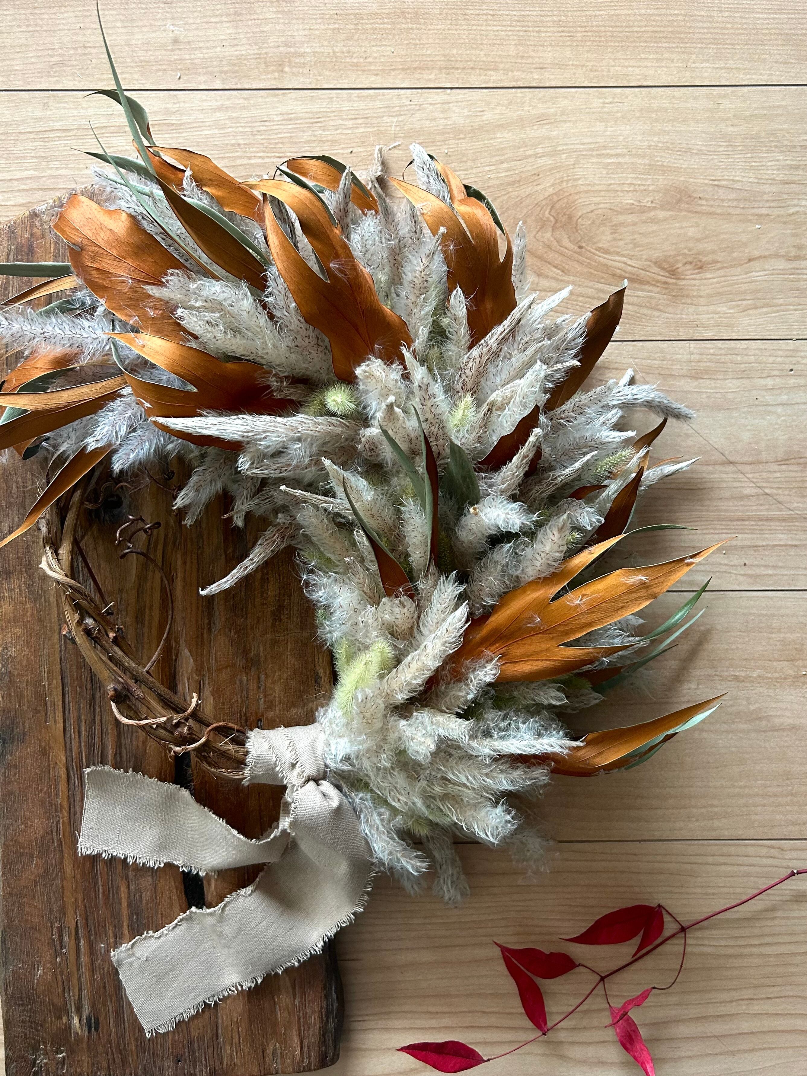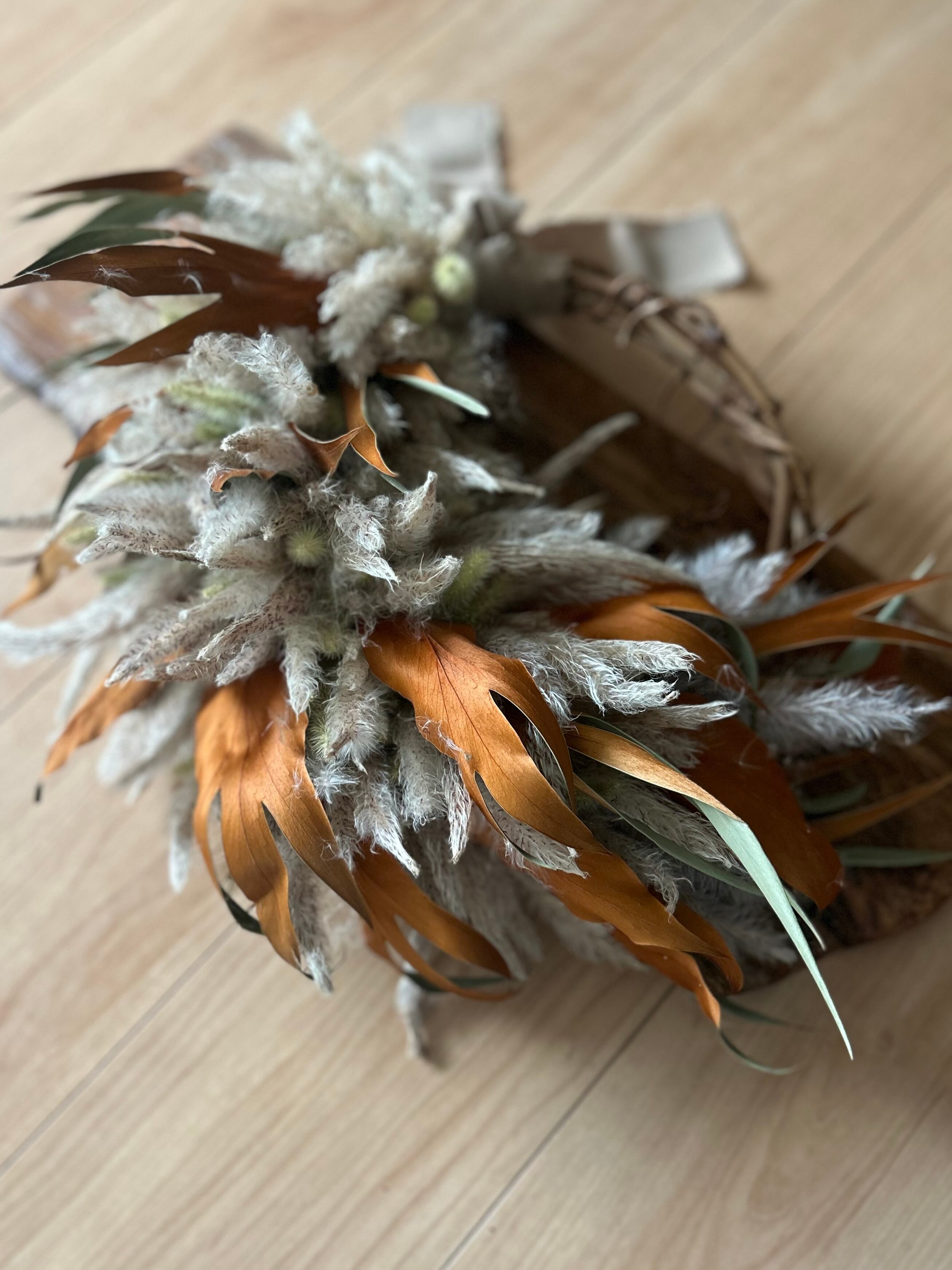 ※自然素材を使用しています。フレッシュな状態のもの、ドライの状態のものと混在しますが、いずれも時間の経過とともにドライが進み、風合いが変化いたします。