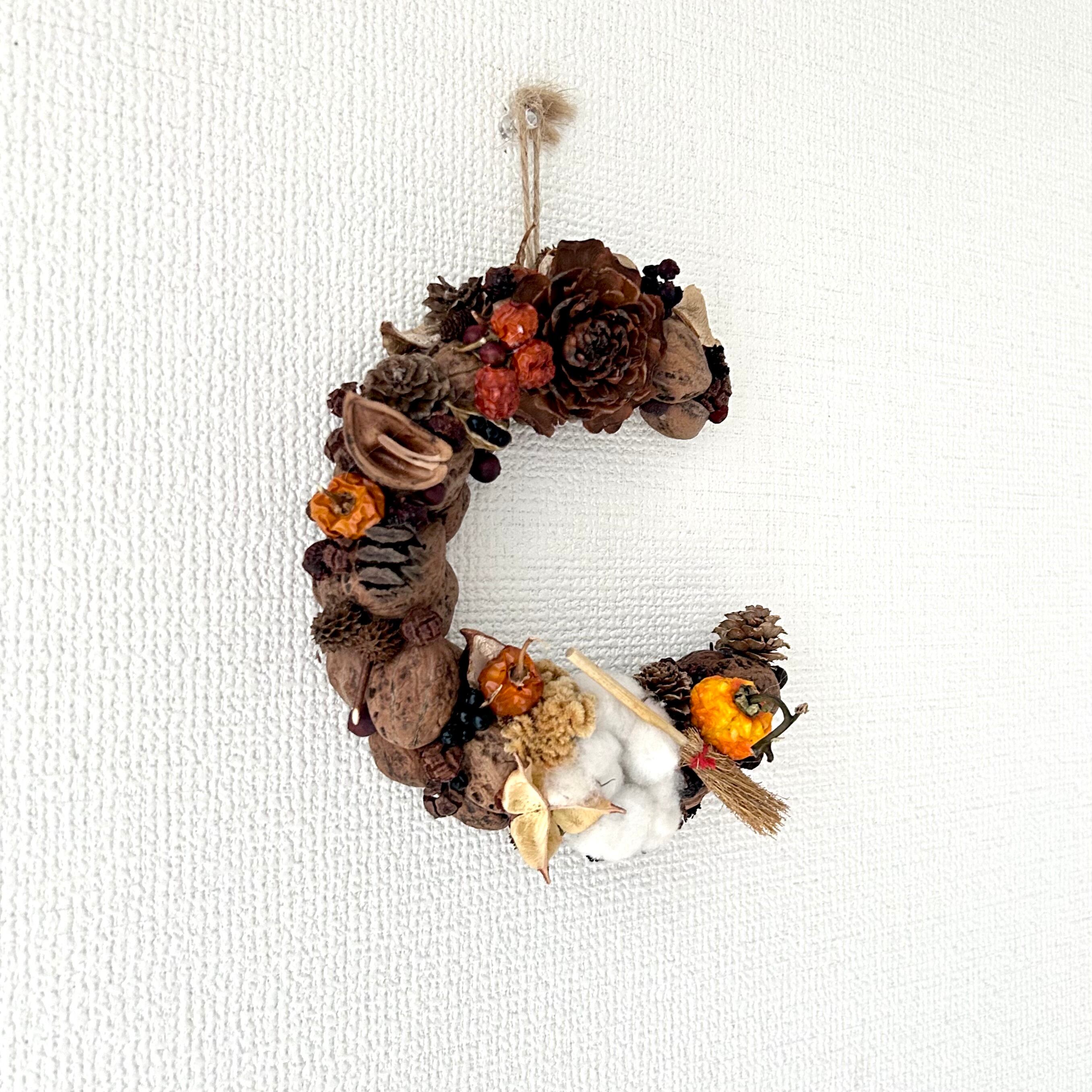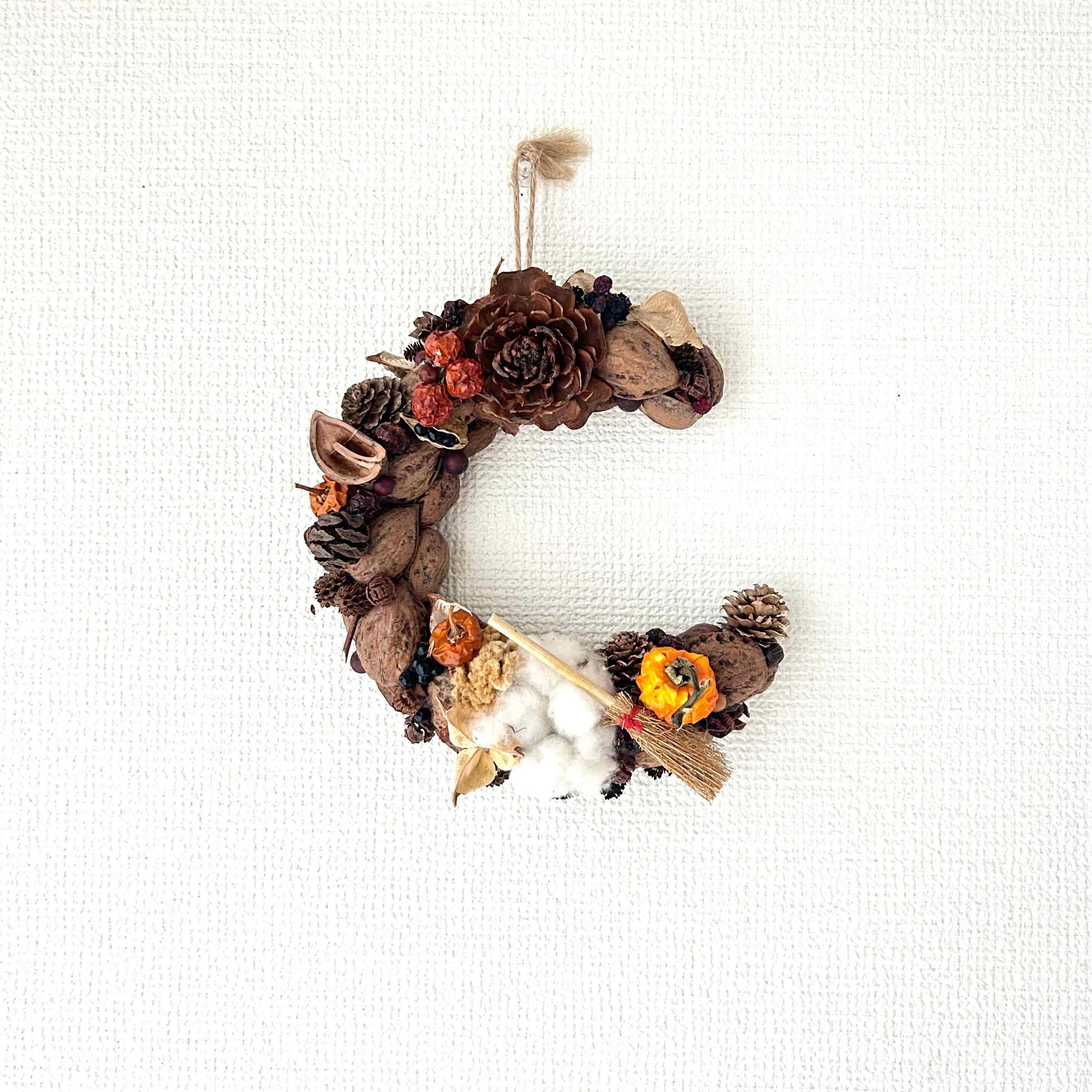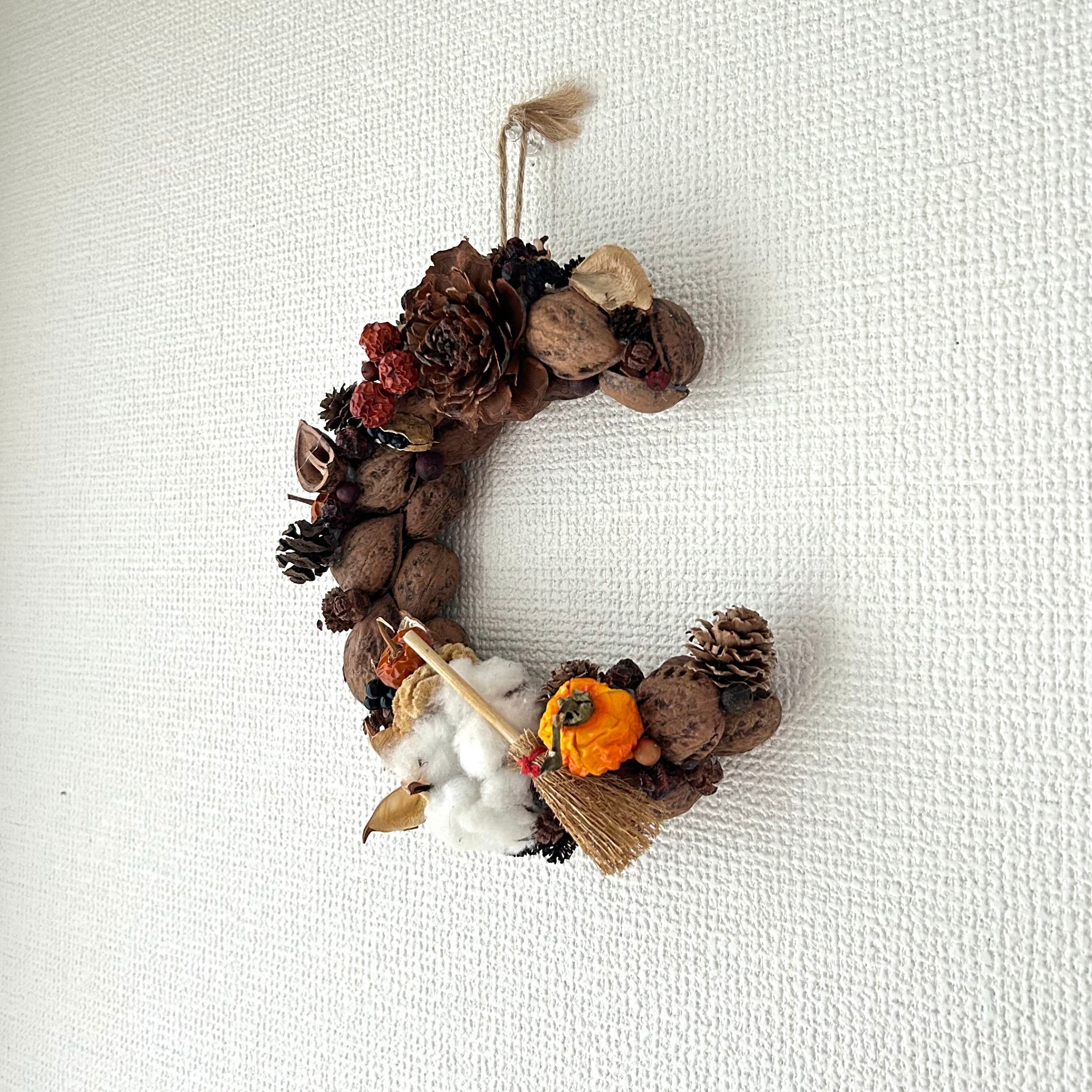 【リース 20cm】 ナチュラルリース 三日月リース クルミ 木の実 秋 ほうき ハロウィン 『秋の宅急便』