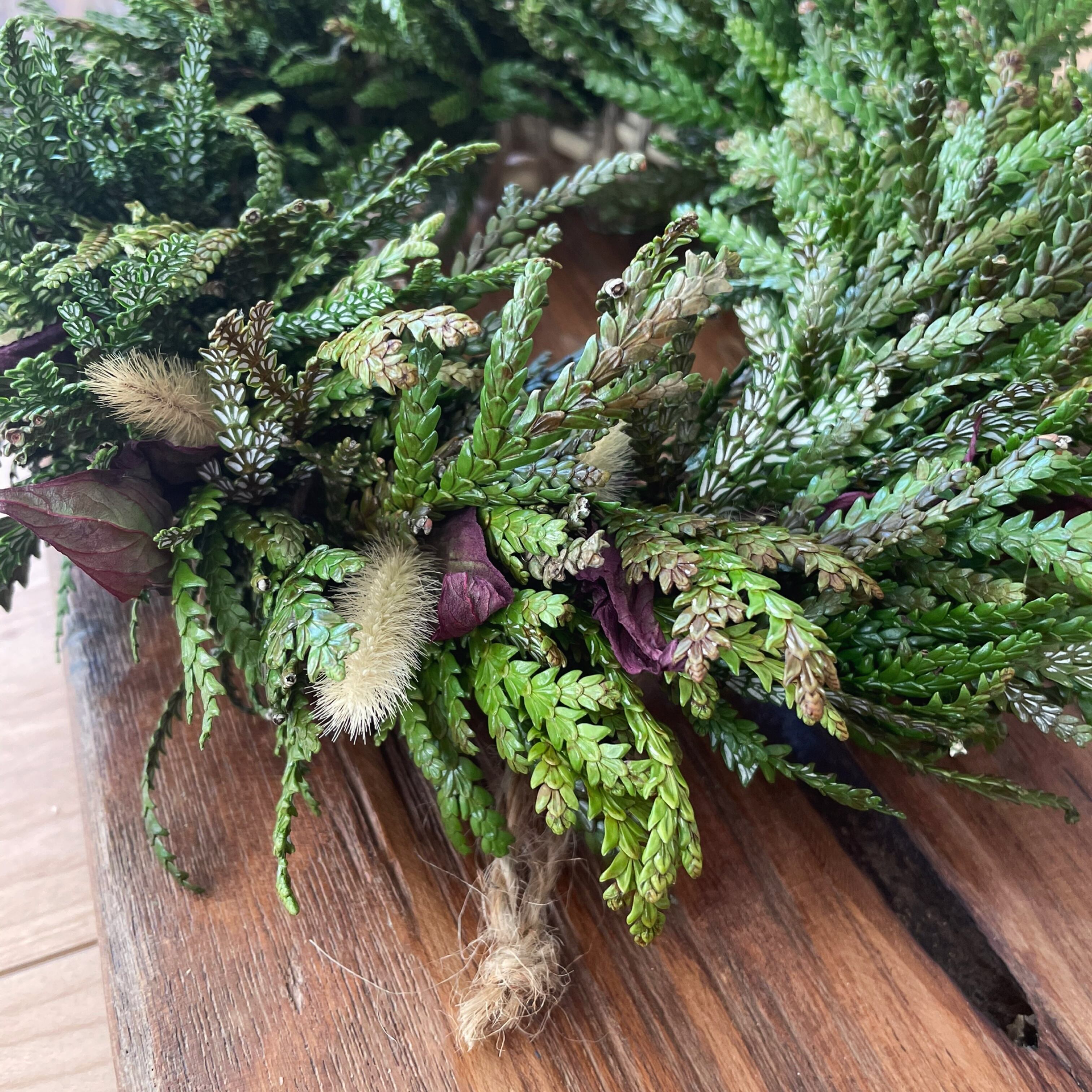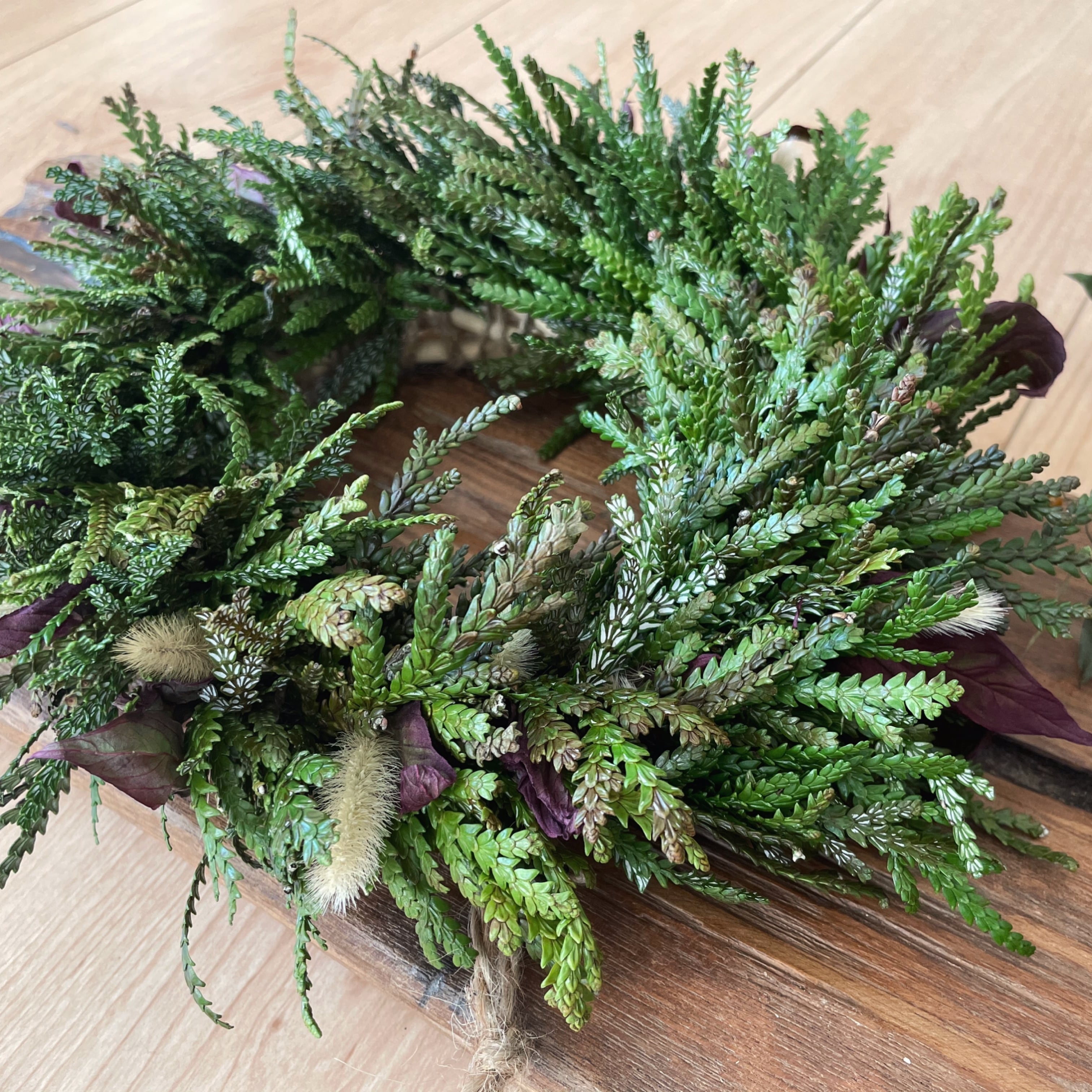 アスナロもドライが進むと徐々に茶系になっていきますが、数ヶ月程度、グリーンの状態をお楽しみいただけると思います。