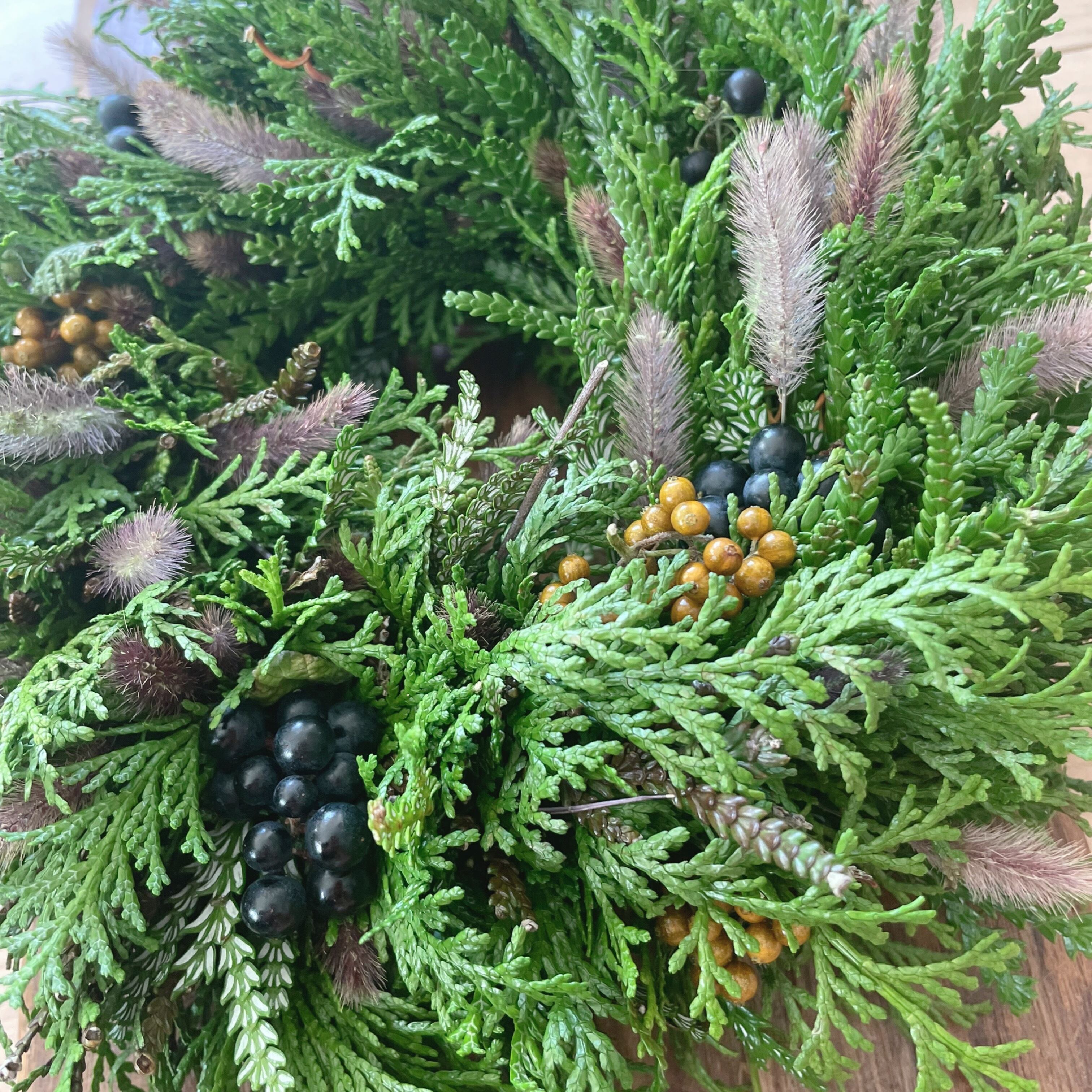 リースは、全て自然素材を使用しており、日に日にドライが進み、色が変化していきます。