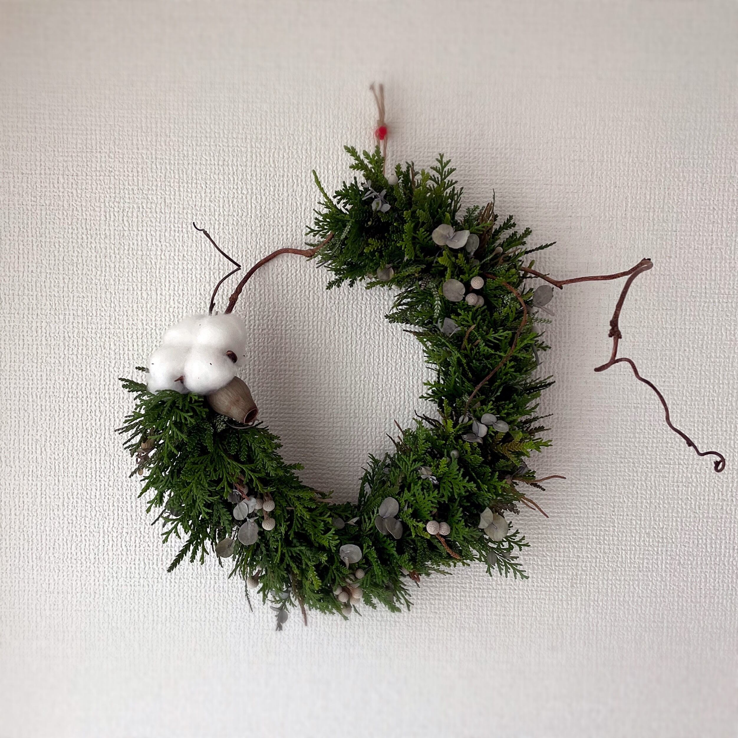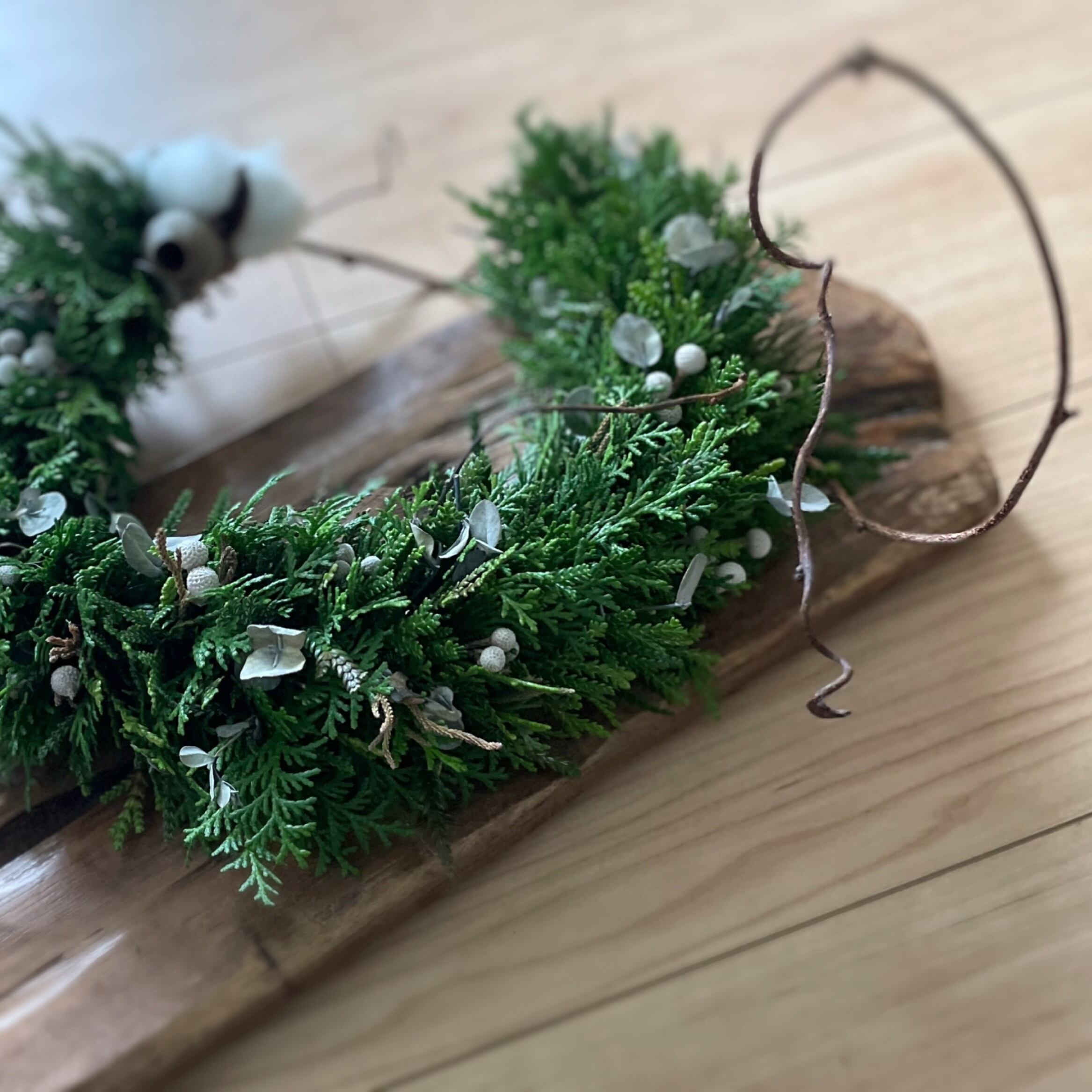 リースは、全て自然素材を使用しており、日に日にドライが進み、色が変化していきます。