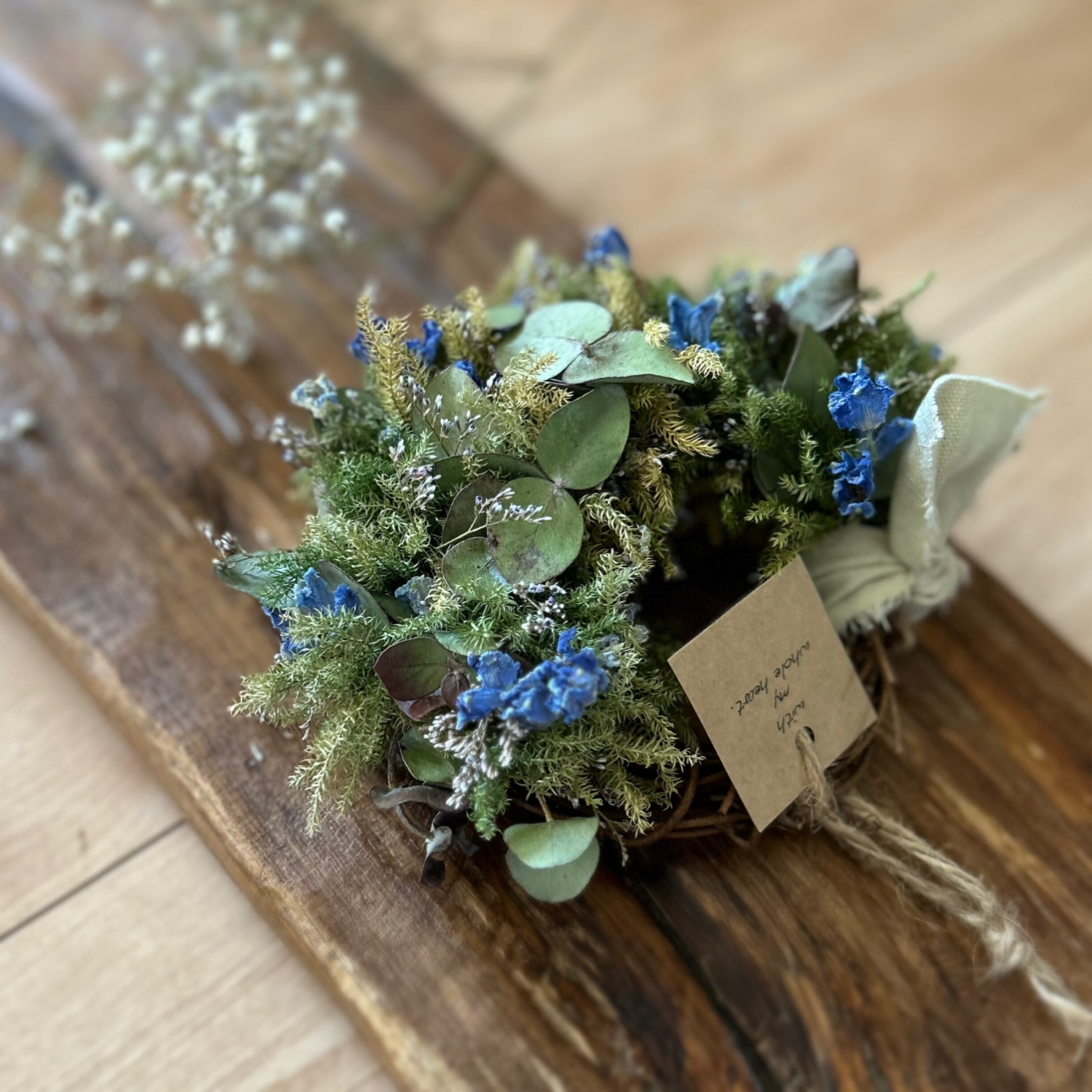 【リース 19cm】 グリーンリース ナチュラルリース ドライフラワー ブルー 夏 『一瞬の風になれ』