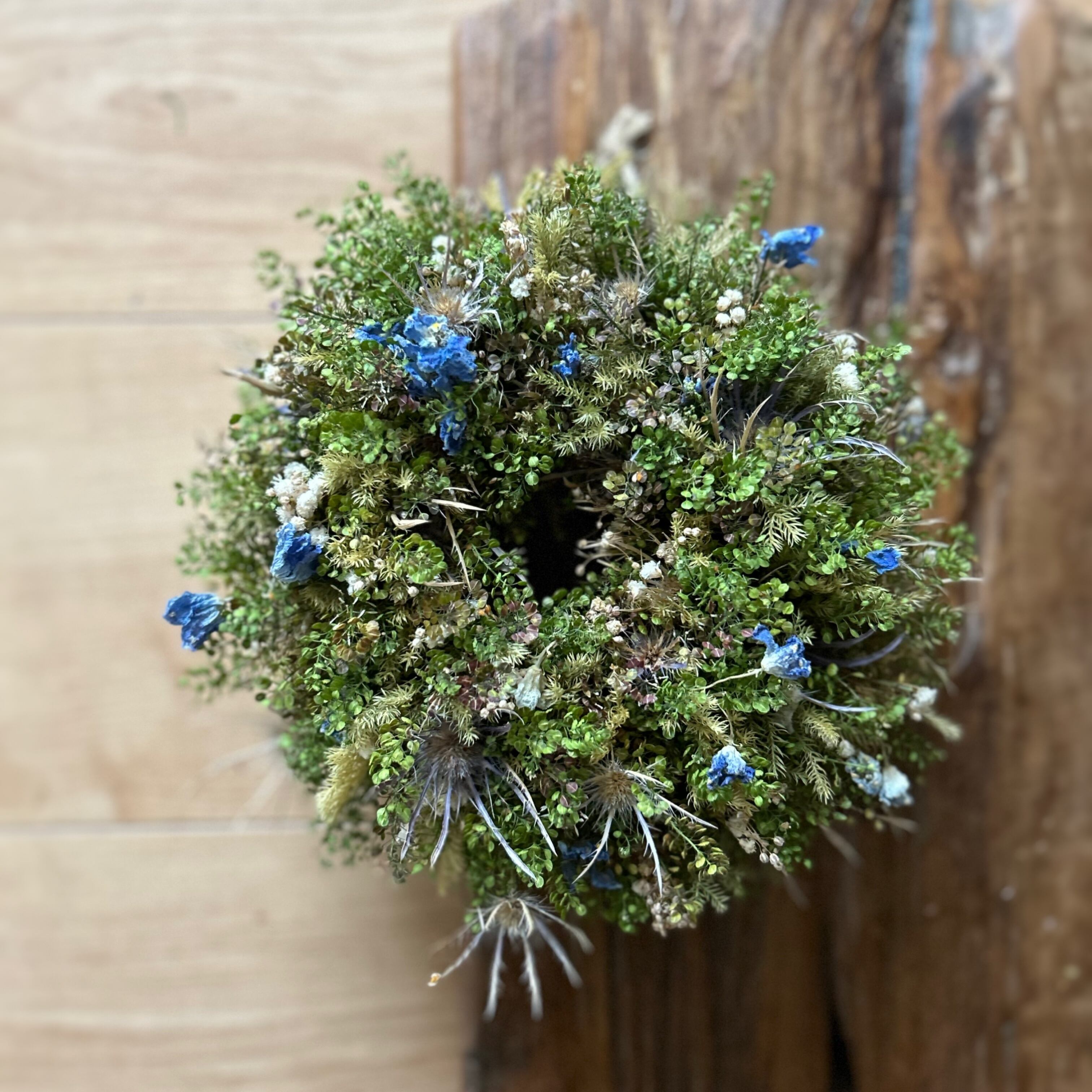 ブルー系のドライフラワー、エリンジューム、デルフィニウム、